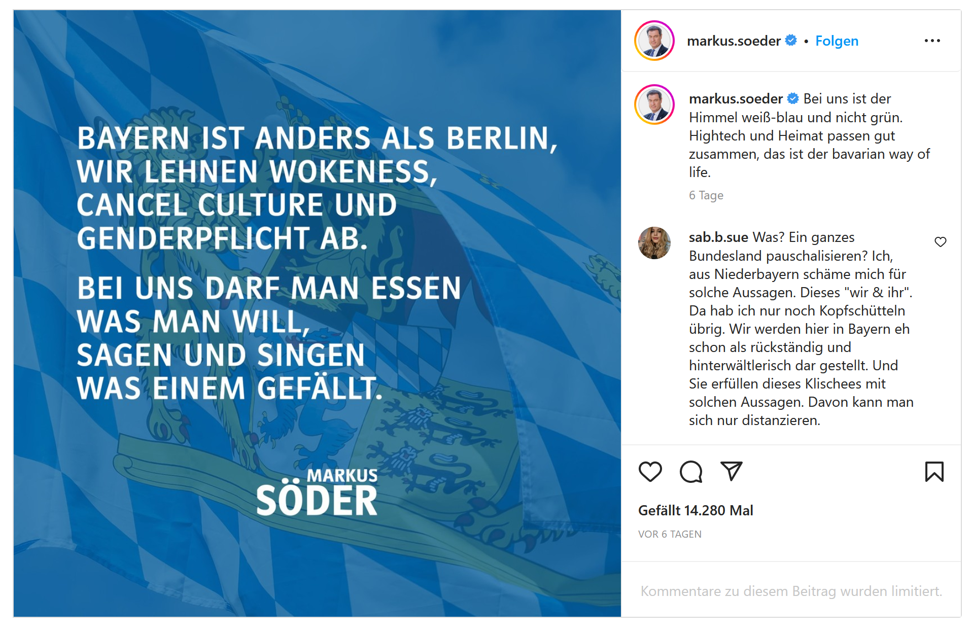 Und so ist es für die Werbung auch durchaus attraktiv, diese Zielgruppe anzuvisieren, denn sie ist sehr groß. Es leben in den 4 Millionenstädten Deutschlands zusammen knapp acht Millionen Menschen, gut 10% der deutschen Gesamtbevölkerung. Diese sind in der Regel deutlich jünger und diverser eingestellt als der Rest der Republik. Söder hat zumindest dahingehend recht, dass das, was in Berlin diskutiert und gelebt wird, nicht repräsentativ für Deutschland ist. Und selbst wenn von den 40 Millionen deutschen Männern 4 Millionen Männer ihr Selbstbild kritisch betrachten, dann bleiben immer noch überwältigende 36 Millionen, die gar nicht daran denken, etwas ändern zu wollen.
