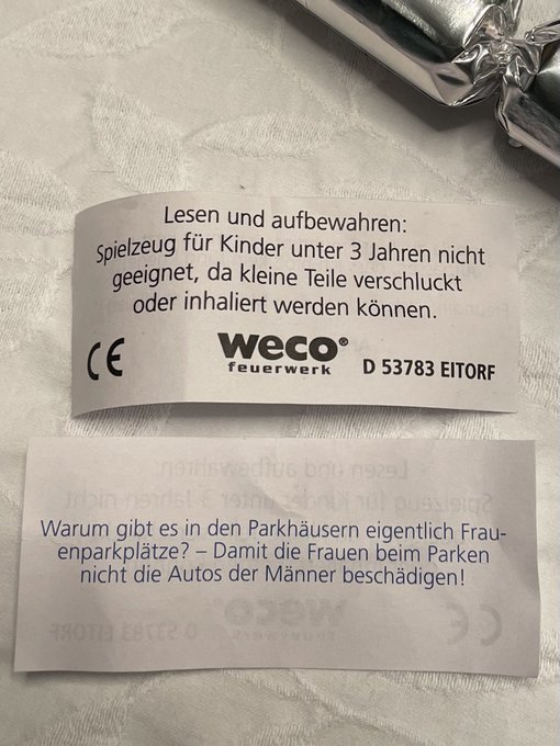Feuerwerkshersteller Weco entschuldigte sich umgehend – da Feuerwerk kein Ablaufdatum habe, seien hier offensichtlich Restchargen von vor Jahren in den Verkauf gekommen. Schon vor 5 Jahren sei man sich dieses Problems bewusst geworden und habe die Witze entsprechend angepasst.