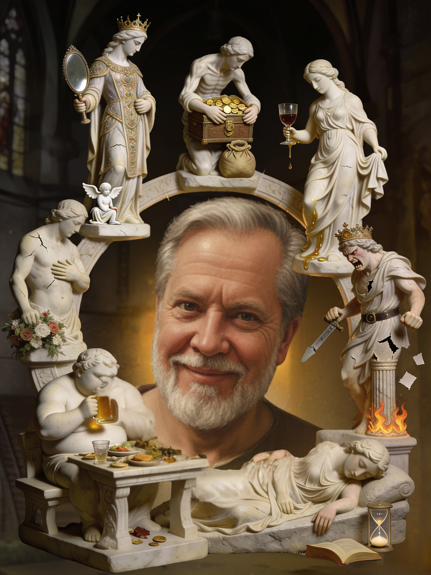 Dass diese Haltungen kulturell bis heute präsent sind, erklärt sich aus ihrer anthropologischen Tiefe. In der Bibel tauchen sie in erzählerischer Form auf. Kain und Abel erzählen von Neid. Judas von Habgier. Die Versuchungen Jesu in der Wüste, wie sie im Matthäusevangelium geschildert werden, bündeln zentrale menschliche Versuchungen. Dante hat diese Dynamiken literarisch zugespitzt, die bildende Kunst hat sie über Jahrhunderte visualisiert, bis hinein in zeitgenössische Skulpturen des 21. Jahrhunderts.